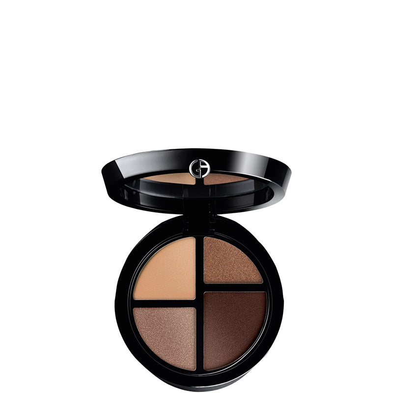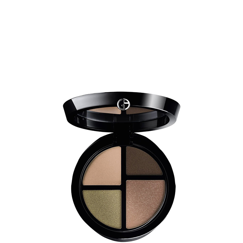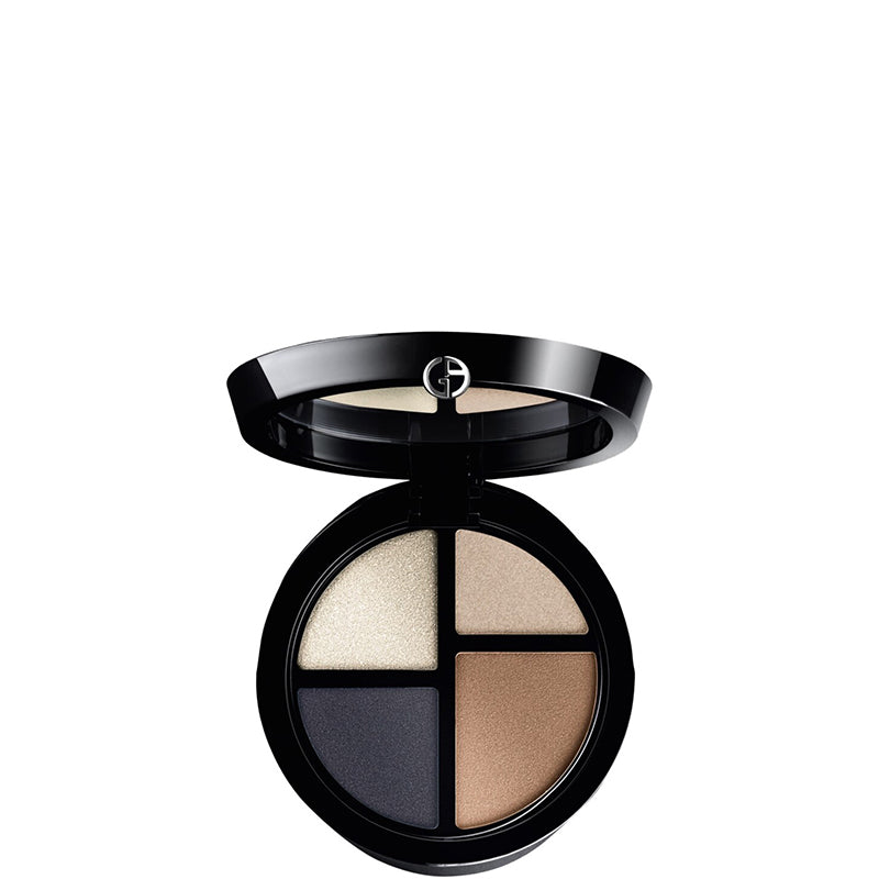 La nuova esclusiva Palette Occhi Eye Quattro racchiude 4 colori in texture ultra-cremosa, La formula è facile da lavorare garantisce un risultato impeccabile per tutta la giornata, Ogni palette presenta 4 shade, con alternanza di finish mat e shimmer ,per realizzare look nuovi e sempre diversi ovunque tu sia- con i pennellini che trovi all'interno del pack, La struttura interna richiama l’iconico logo GA- Giorgio Armani, Tra i 4 settori il più grande contiene la tonalità più comunemente utilizzata, Si può scegliere tra uno smoky estremo, un nude-brown raffinato o i contrasti piu’ decisi tra il blu e il beige o tra il verde e il rame.