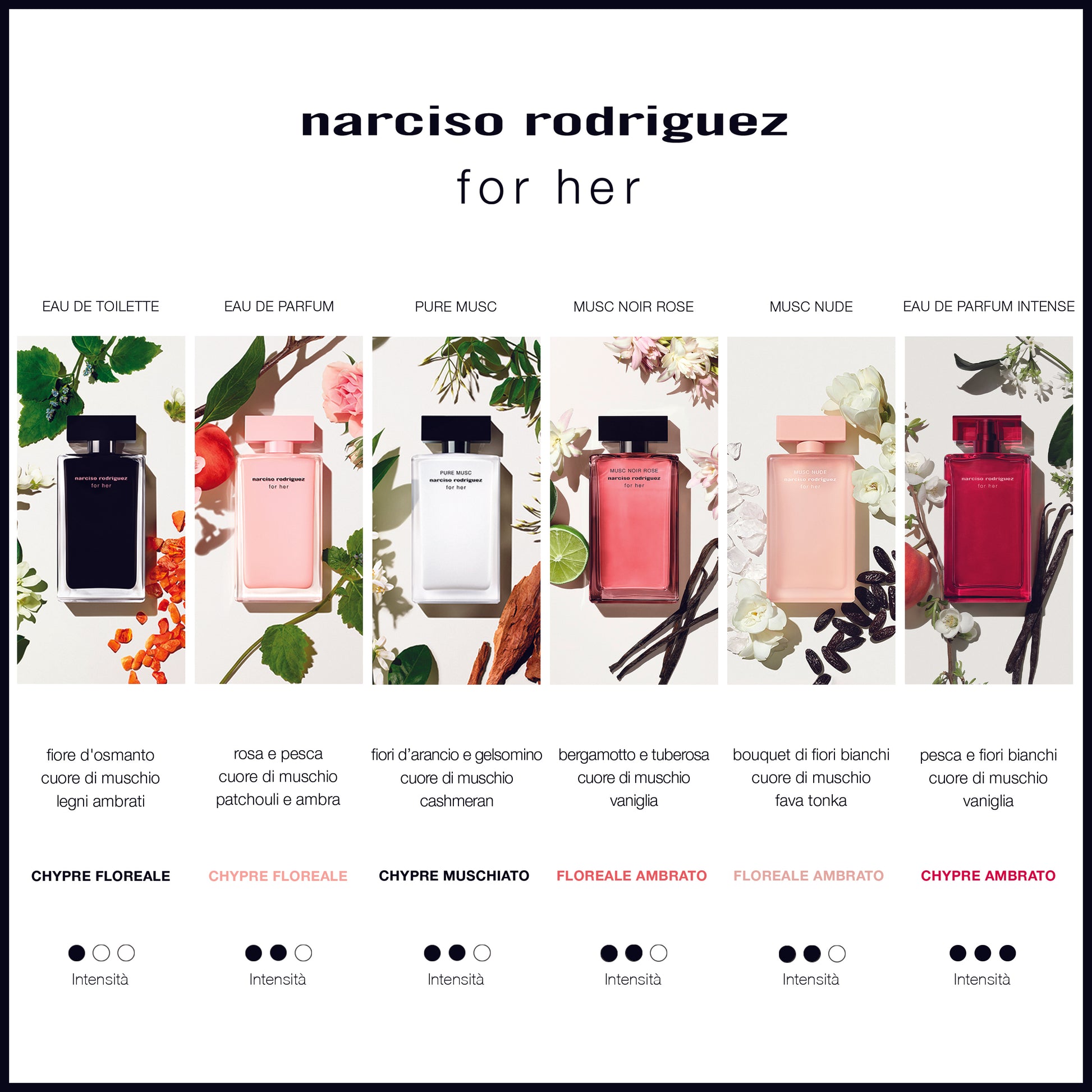 for her eau de parfum intense è il nuovo profumo da donna di Narciso Rodriguez. L’iconico cuore di muschio è reso ancor più intenso, per rivelare la personalità decisa della nuova donna for her.