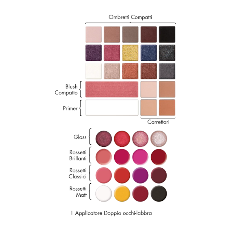 Palette professionale dedicata al trucco occhi, labbra e viso.