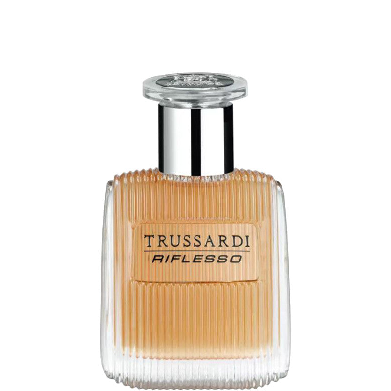 TRUSSARDI - Riflesso Eau de Toilette. Fragranza maschile caratterizzata principalmente da note legnose e orientali. Note di Testa di Bergamotto, Pompelmo Rosa e Mela Verde, la caratterizzano. Sicurezza e eleganza naturale sono espresse dalle note del Geranio, dalle Foglie di Violetta e dalla Lavanda, nel fondo la Pelle Italiana, il Vetiver e la Tonka ne esaltano la fragranza.